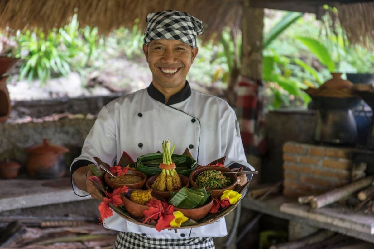 Le matin, vous irez sur le marché chercher les ingrédients nécessaires pour votre COURS DE CUISINE avec le chef balinais. Déjeuner avec ce que vous aurez préparé Visite de la fondation culturelle PASRAMAN Vidja Giri : les enfants vous accueillent pour un cours d’arts balinais ; dans une démarche de tourisme solidaire, une donation sera reversée à la fondation grâce à votre visite. Afternoon tea servi face à la vallée.